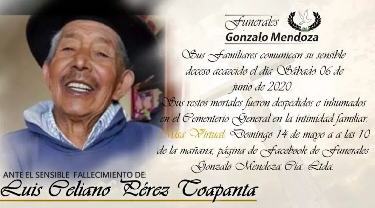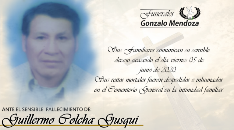 Riobamba, 06 de junio Parte Mortuorio Entregó su alma el Creador quien en vida fue Sr. Guillermo Colcha Gusqui Su esposa: Blanca Sara Quishpi Seiba (+) Sus hijos: Edison Oswaldo, Iván Marcelo, Verónica del Rocío y Edgar Efraín Colcha Quishpi…