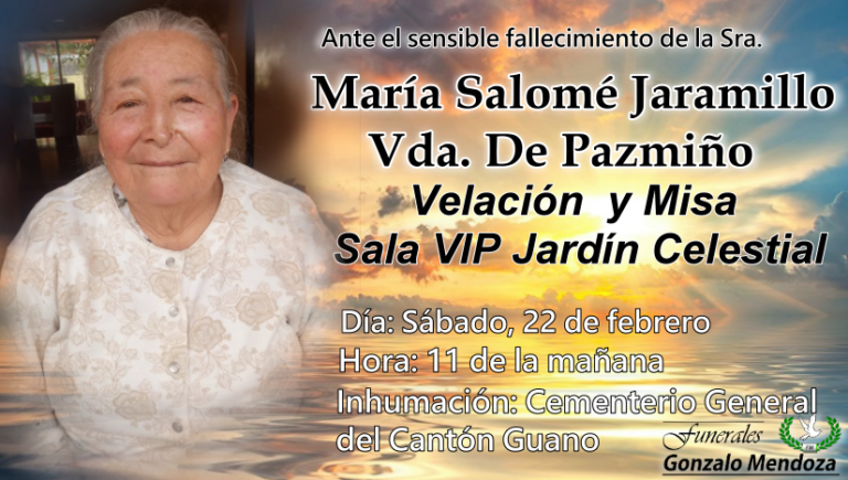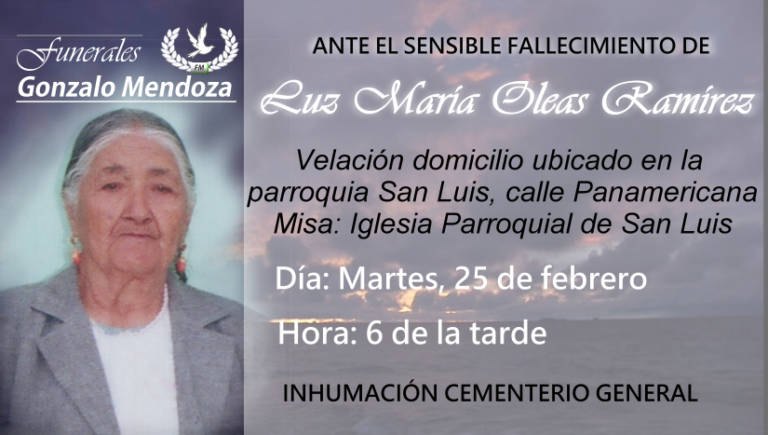 Riobamba, 23 de febrero La muerte es la parte más difícil de la vida, no para los que lo pasan, sino para los que le quedan atrás Parte Mortuorio en la Parroquia de San Luis A los 93 años entregó…