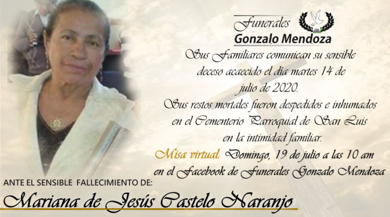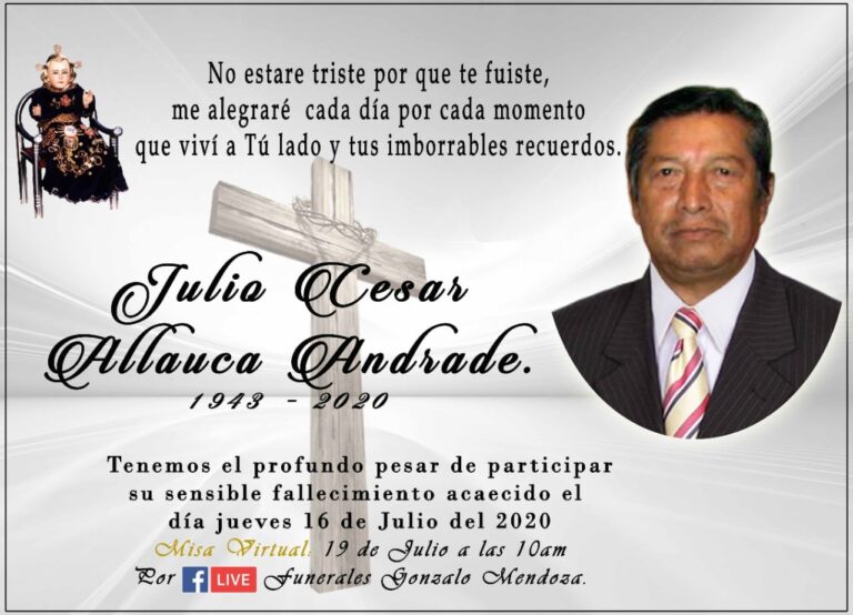 Riobamba, 17 de julio Parte Mortuorio Entregó su alma al Creador quien en vida fue: JULIO CESAR ALLAUCA ANDRADE Sus Padres: Nicolás Allauca ➕ Rosa Andrade ➕ Su Esposa: Teresa de Jesús Buñay Ramos ➕ Sus Hijos: Luis José, Julio Patricio, Cecilia Margoth, Marcelo…