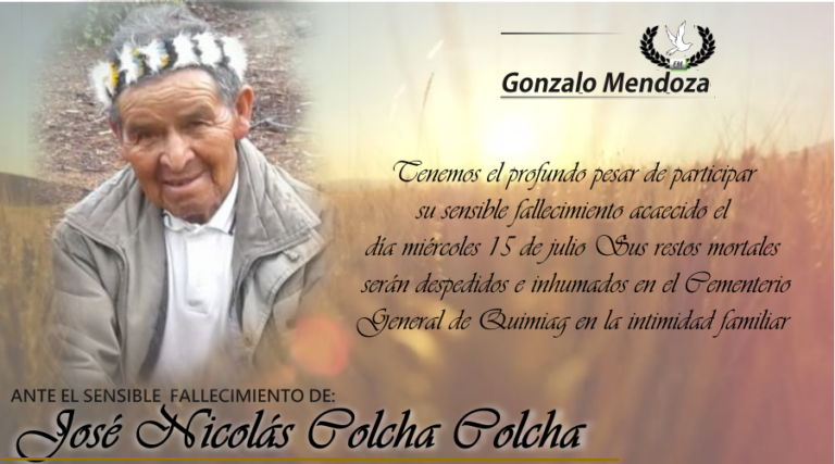 Quimiag, 15 de julio Gracias Dios mío: “Por habernos dado un Esposo, Padre y Abuelito tan amado Siempre le veremos, tendiéndonos su cálido abrazo y su sonrisa cariñosa Por haber sido un hombre ejemplar, aferrado a su convicción Por mantener…