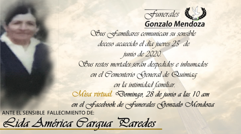Quimiag, 25 de junio SEÑOR NUESTRO DOLOR ES INMENSO, PERO TU MISERICORDIA ES INFINITA SU RECUERDO PEDURRÁ EN NUESTRAS ALMAS ES UNA LLAMA INEXTINGUIBLE QUE, AMORTIGUA EL DOLOR DE SU AUSENCIA. Parte Mortuorio Entregó su alma al Creador quien en…