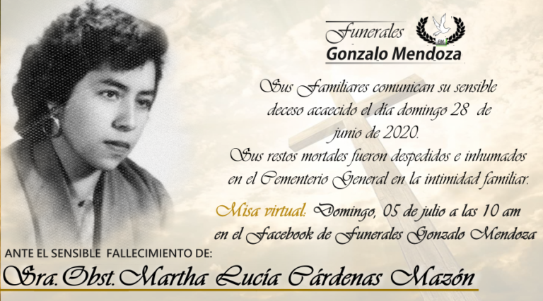 Riobamba, 01 de julio Su muerte dulce y tranquila semejante a un sueño de paz Cerró sus ojos y su alma libre se elevó hacia la mansión de la luz eterna Triste quedó nuestro hogar sin su sombra querida Inútilmente…