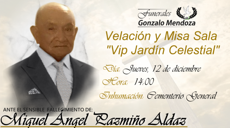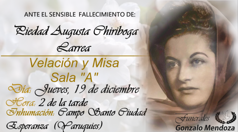 Riobamba, 19 de diciembre Nos despedimos de ti, pero vives en nuestros corazones. Por eso podemos decir que no has muerto, porque mientras vivas aquí tu presencia nos cuidará como cuando en vida lo hacías. Le damos las gracias al…