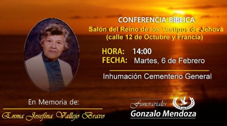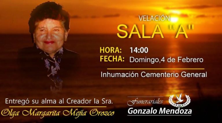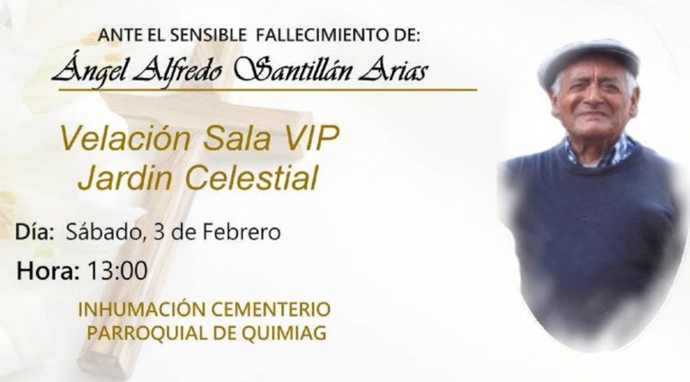 [su_animate type=»slideInUp»] Riobamba, 3 de FebreroAunque no estés más a nuestro lado, tú presencia es permanente.Las enseñanzas que nos dejaste las viviremos siempre.Tenemos la seguridad que nos amarás desde el cielo, como nos amaste en la tierra. [/su_animate]   Parte Mortuorio…