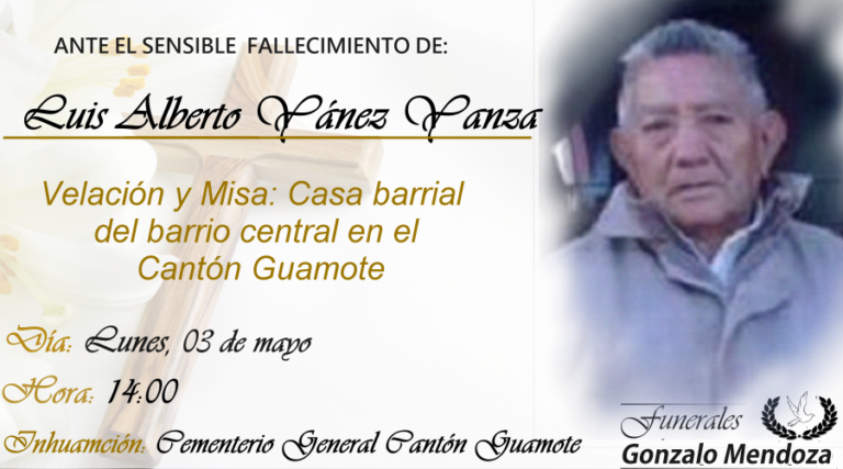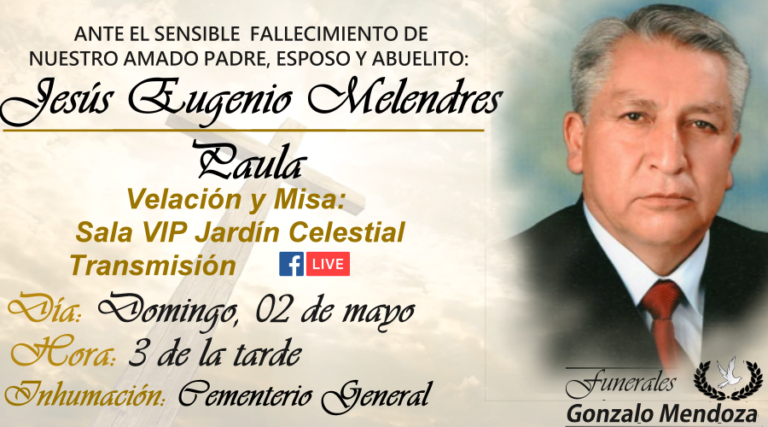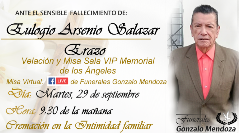 Silencio caminante baja el tono de tu voz… Que nuestro hermano, ¡no está muerto! Simplemente se ha dormido en los brazos del Señor… PARTE MORTUORIO DESCANSA EN LA PAZ DEL CREADOR QUIEN EN VIDA FUE: SR. EULOGIO ARCENIO SALAZAR ERAZO…