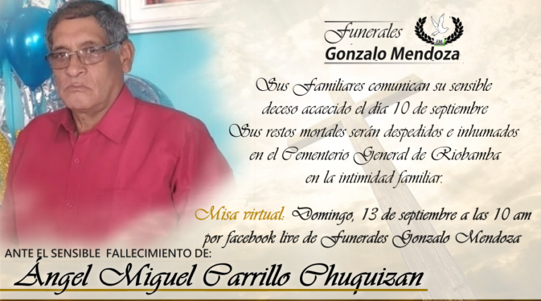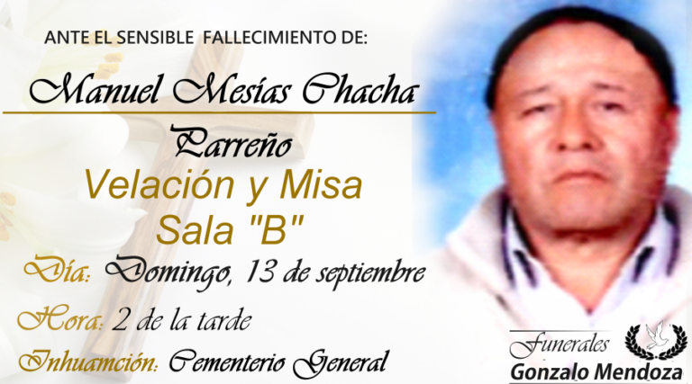 Filipenses 1:21 21 Porque para mí el vivir es Cristo, y el morir es ganancia. Parte Mortuorio Entregó su alma al Creador quien en vida fue Sr. Manuel Mesías Chacha Parreño Su Esposa: Rosa Benavides Sus Hijos: Miriam, Guicela, Diana…