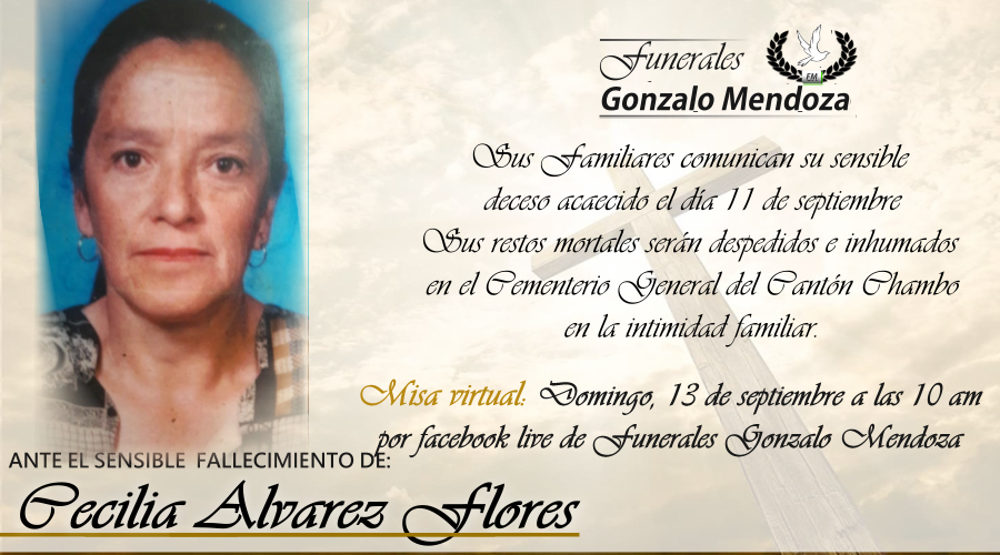 Sus Restos mortales serán despedidos e inhumados en el Cementerio General de Chambo en la intimidad general