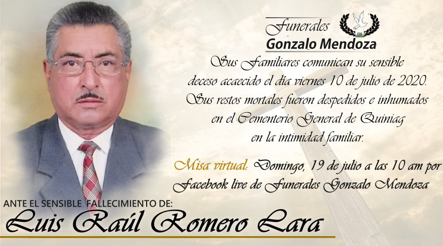 E invitan a la misa virtual será transmitida por Facebook live de Funerales Gonzalo Mendoza el día Domingo 19 de julio a las 10 de la mañana.