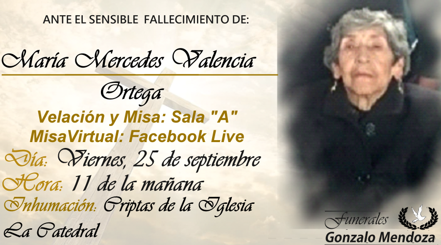 Sus restos mortales serán velados en la Sala “A” de Funerales Gonzalo Mendoza donde se oficiará su misa de cuerpo presente el día viernes 25 de septiembre a las 11 de la mañana y de allí a las Criptas de la Iglesia La Catedral para su cristiana sepultura