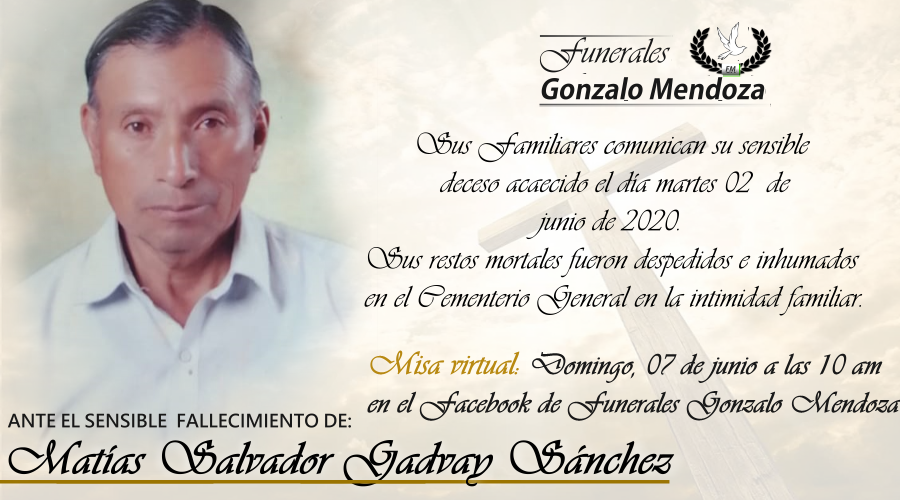 A la vez invitamos a la misa virtual que se realizará el día Domingo 7 de junio a las 10 de la mañana por la página de Facebook live de Funerales Gonzalo Mendoza Cia. Ltda.