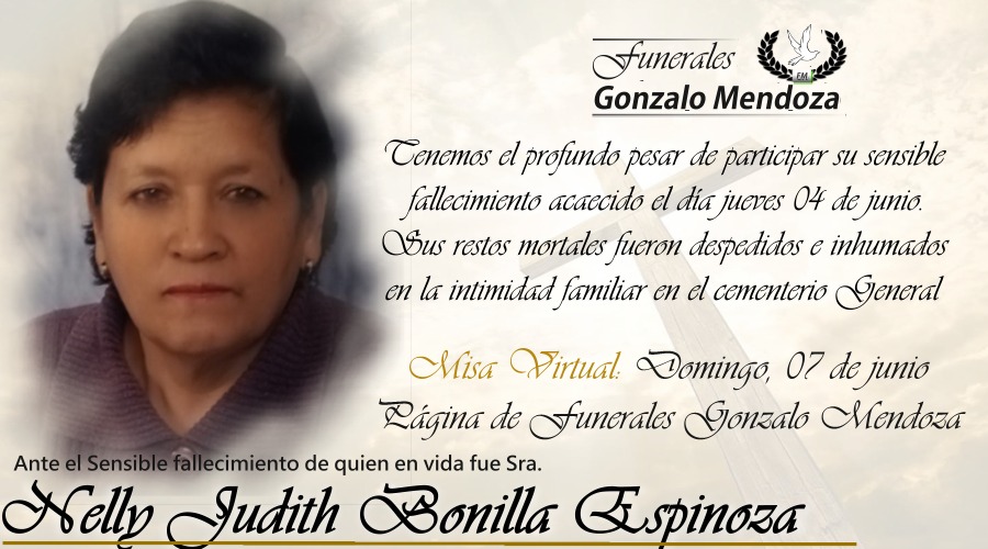 La misa virtual será transmitida por la página de Facebook live de Funerales Gonzalo Mendoza Cia. Ltda. el día Domingo 07 de junio a las 10 de la mañana